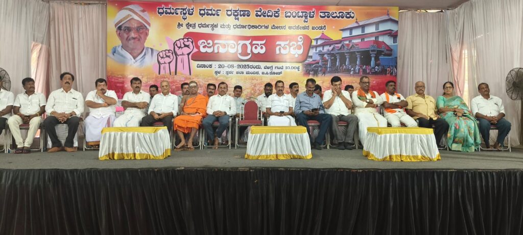 ಬಂಟ್ವಾಳ: ಧರ್ಮಸ್ಥಳ ಧರ್ಮ ರಕ್ಷಣಾ ವೇದಿಕೆ ಬಂಟ್ವಾಳ ಇದರ ನೇತೃತ್ವದಲ್ಲಿ ಶ್ರೀ ಕ್ಷೇತ್ರ ಧರ್ಮಸ್ಥಳ ಮತ್ತು ಧರ್ಮಾಧಿಕಾರಿಗಳ ಮೇಲಿನ ಅವಹೇಳನವನ್ನು ಖಂಡಿಸಿ ಜನಾಗ್ರಹ ಸಭೆ ಬಿ.ಸಿ.ರೋಡಿನಲ್ಲಿ ಬುಧವಾರ ನಡೆಯಿತು.