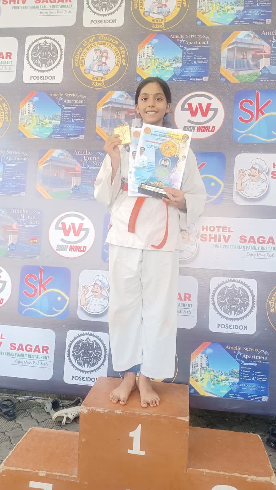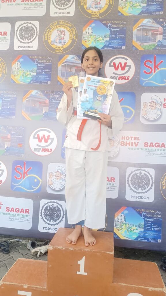 ಉಡುಪಿ : ಉಡುಪಿಯಲ್ಲಿ ನಡೆದ ರಾಷ್ಟ್ರೀಯ ಮಟ್ಟದ ಕರಾಟೆ ಓಪನ್ ಚಾಂಪಿಯನ್ ಕಟ ಮತ್ತು ಕಮಿಟೆ ವಿಭಾಗದಲ್ಲಿ ತನಿಷ್ಕ ಪವನ್ ಕುಮಾರ್2 ಚಿನ್ನದ ಪದಕಗಳನ್ನು ಪಡೆದು ವಿಜಯ ಶಾಲಿಯಾಗಿದ್ದಾರೆ . ಉಡುಪಿ ಅಜ್ಜರಕಾಡು ಸೈಂಟ್ ಸಿಸಿಲಿಯ ಪ್ರೌಢಶಾಲೆಯ 7ನೇ ತರಗತಿಯ ವಿದ್ಯಾರ್ಥಿನಿ.