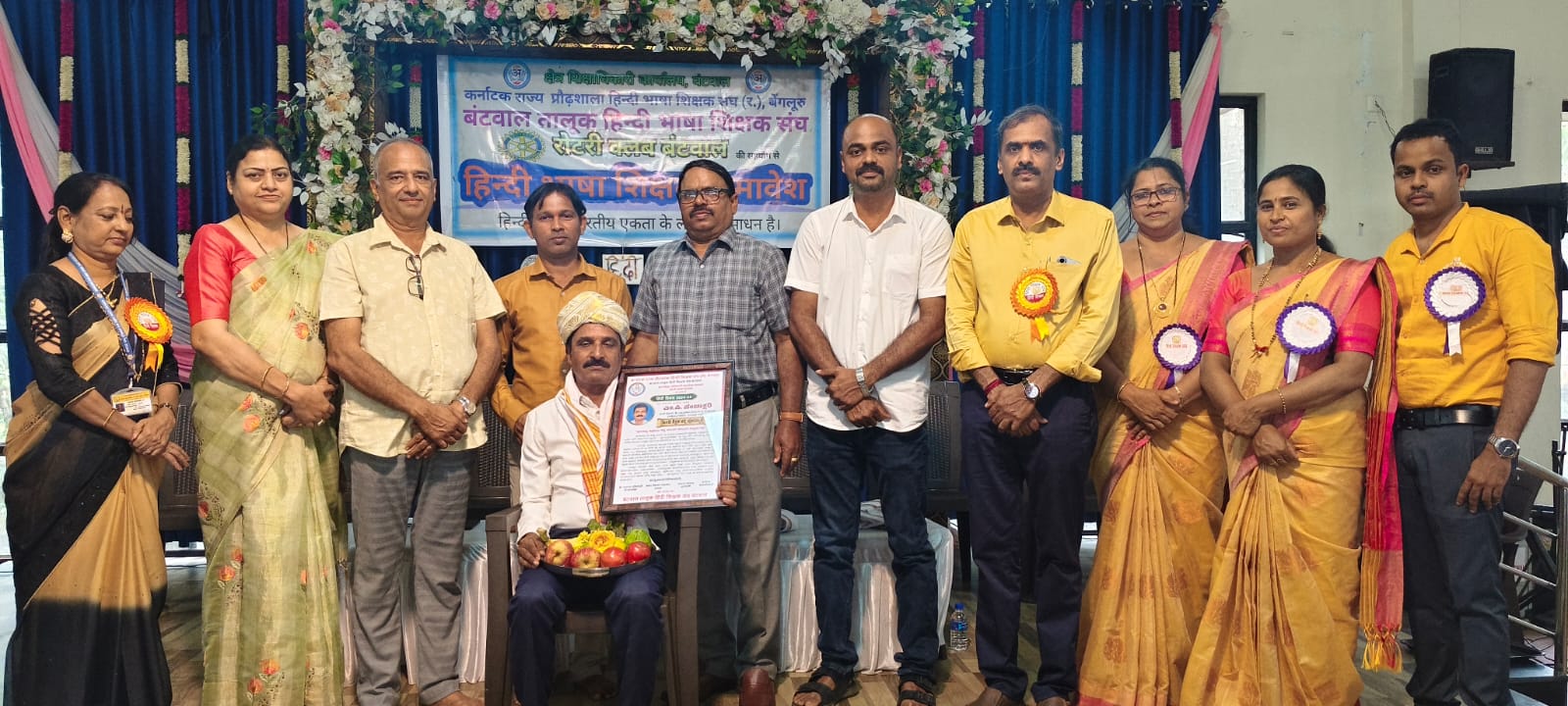ಪಾಣೆಮಂಗಳೂರಿನ ಎಸ್ ಎಲ್ ಎಂ. ಪಿ. ಶಾಲೆಯ ಹಿಂದಿ ಶಿಕ್ಷಕ ಪಂಚಾಕ್ಷರಿ ಯವರಿಗೆ ಹಿಂದಿ ರತ್ನ ಪ್ರಶಸ್ತಿ ನೀಡಿ ಗೌರವಿಸಲಾಯಿತು.. ಬಂಟ್ವಾಳ ತಾಲೂಕು ಸಹ ಶಿಕ್ಷಕರ ಸಂಘದ ಅಧ್ಯಕ್ಷ ಜೋಯಲ್ ಲೋಬೋ ಮುಖ್ಯ ಅತಿಥಿಯಾಗಿ ಭಾಗವಹಿಸಿ ಮಾತನಾಡಿ ಹಿಂದಿ ಶಿಕ್ಷಕರಿಗೆ ತೊಂದರೆಯಾಗುವುದಿಲ್ಲ, ಹಿಂದಿ ಶಿಕ್ಷಕರು ಆತಂಕ ಪಡುವುದು ಬೇಡ ಎನ್ನುವ ಮಾಹಿತಿ ಸಂಘದಿಂದ ಸಿಕ್ಕಿದೆ. ಅತ್ಯಂತ ವ್ಯವಸ್ಥಿತವಾಗಿ ಬಂಟ್ವಾಳ ತಾಲೂಕಿನಲ್ಲಿ ಹಿಂದಿ ದಿನಾಚರಣೆಯನ್ನು ನಡೆಸಿಕೊಂಡು ಬರುತ್ತಿರುವುದು ಅಭಿನಂದನೀಯ ಎಂದರು. ಬಂಟ್ವಾಳ ರೋಟರಿ ಆನ್ಸ್ ಕ್ಲಬ್ ಅಧ್ಯಕ್ಷೆ ಗೌರಿ ಮಾಧವ ಶೆಣೈ ಮಾತನಾಡಿ ಹಿಂದಿ ಭಾಷೆ ಪ್ರತಿಯೊಬ್ಬ ಭಾರತೀಯನ ಹೃದಯದಲ್ಲಿದೆ. ಹಿಂದಿ ಭಾಷೆ ಮಾತನಾಡುವ ಮೂಲಕ ಕೇವಲ ಒಂದು ದಿನ ಮಾತ್ರವಲ್ಲ ಪ್ರತೀ ದಿನ ಹಿಂದಿ ದಿವಸ ಆಚರಿಸಬೇಕಾಗಿದೆ ಎಂದರು.