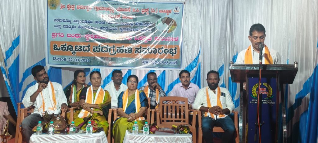ಕುರಿಯಾಳ ಶಾಲೆಯಲ್ಲಿ ನಡೆದ ಶ್ರೀ ಕ್ಷೇತ್ರ ಧರ್ಮಸ್ಥಳ ಗ್ರಾಮಾಭಿವೃದ್ದಿ ಯೋಜನೆ ಬಿ.ಸಿ.ಟ್ರಸ್ಟ್ ಇದರ ಬಿ.ಸಿ.ರೋಡು ವಲಯದ ಪ್ರಗತಿ ಬಂಧು ಸ್ವಸಹಾಯ ಸಂಘದ ಕುರಿಯಾಳ ಒಕ್ಕೂಟದ ಪದಗ್ರಹಣ ಸಮಾರಂಭದಲ್ಲಿ ನೂತನ ಪದಾಧಿಕಾರಿಗಳಿಗೆ ಜವಾಬ್ದಾರಿ ಹಸ್ತಾಂತರಿಸಿ ಮಾತನಾಡಿದರು.